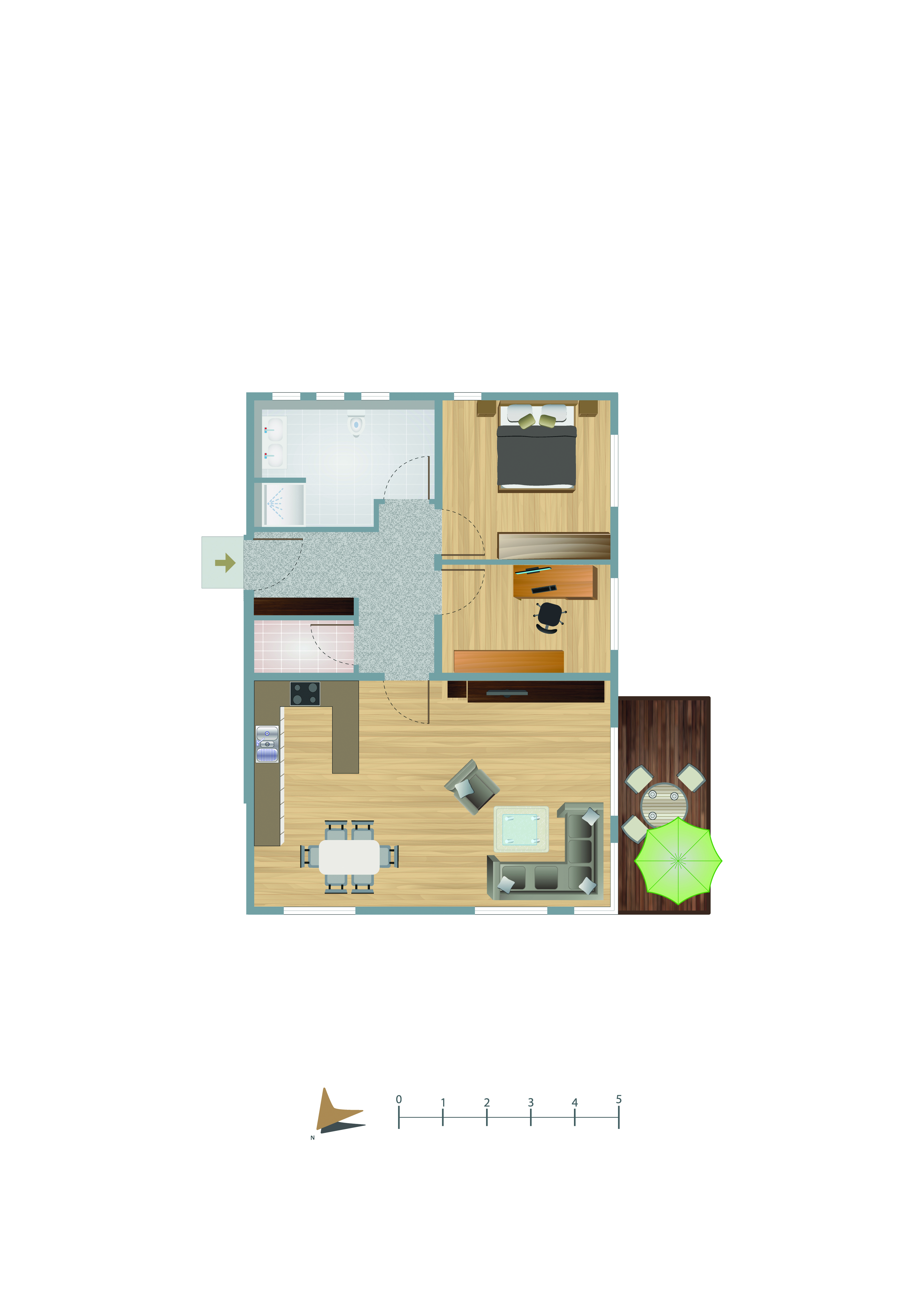 Die Wohnflächenberechnung erfolgte nach der Wohnflächenverordnung. Geringfügige Abweichungen bis zu 3% bezogen auf die Gesamtnutz- und Wohnfläche sind bauseits möglich. Weitere Abweichungen können bei Änderungen der Standardausführungen entstehen. Abbildung kann Sonderwünsche enthalten.